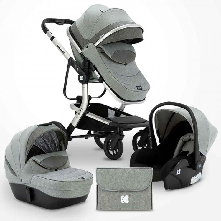 Количка - IRENE 3 во 1 • Погодна од самото раѓање до 15 kg. • Луксузна и лесна алуминиумска рамка. • Систем за брзо и лесно преклопување. • Рачка со прилагодување на висината во 4 позиции. • Рачно сошиена еко-кожа на рачката на количката. • Мрежен прозорец за поголема контрола на детето. • Мека подлога за седиштето. • Големо покривче за сенка. • Предна заштитна рамка која може да се извади. • Ротирачки предни т.. Category: Product #: 550809, 551470 Regular price: 22.990 ден. 22.990 Available from: kikkaboo